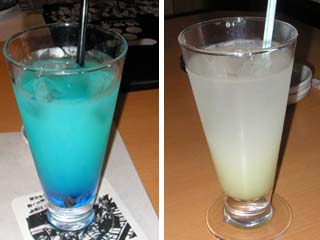 青いのが沖田総司(カクテル)。白いのが藤堂平助(ジュース)。